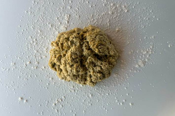 Seitan is the result of mixing vital wheat gluten with water and spices, kneading it like a dough, and cooking it—usually in the oven or a steamer. Vital wheat gluten, which you can find at most big markets, is basically flour with the starch removed, leaving only the gluten behind. Most premade supermarket seitan is already seasoned and processed into crumbles, “bacon,” or sausages. At home, you can mound it into a loaf and slice it to make mock deli meat, or form it into nuggets, patties, or cutlets to mimic whatever cut you like. Even as a dough, it kinda looks like ground chicken: